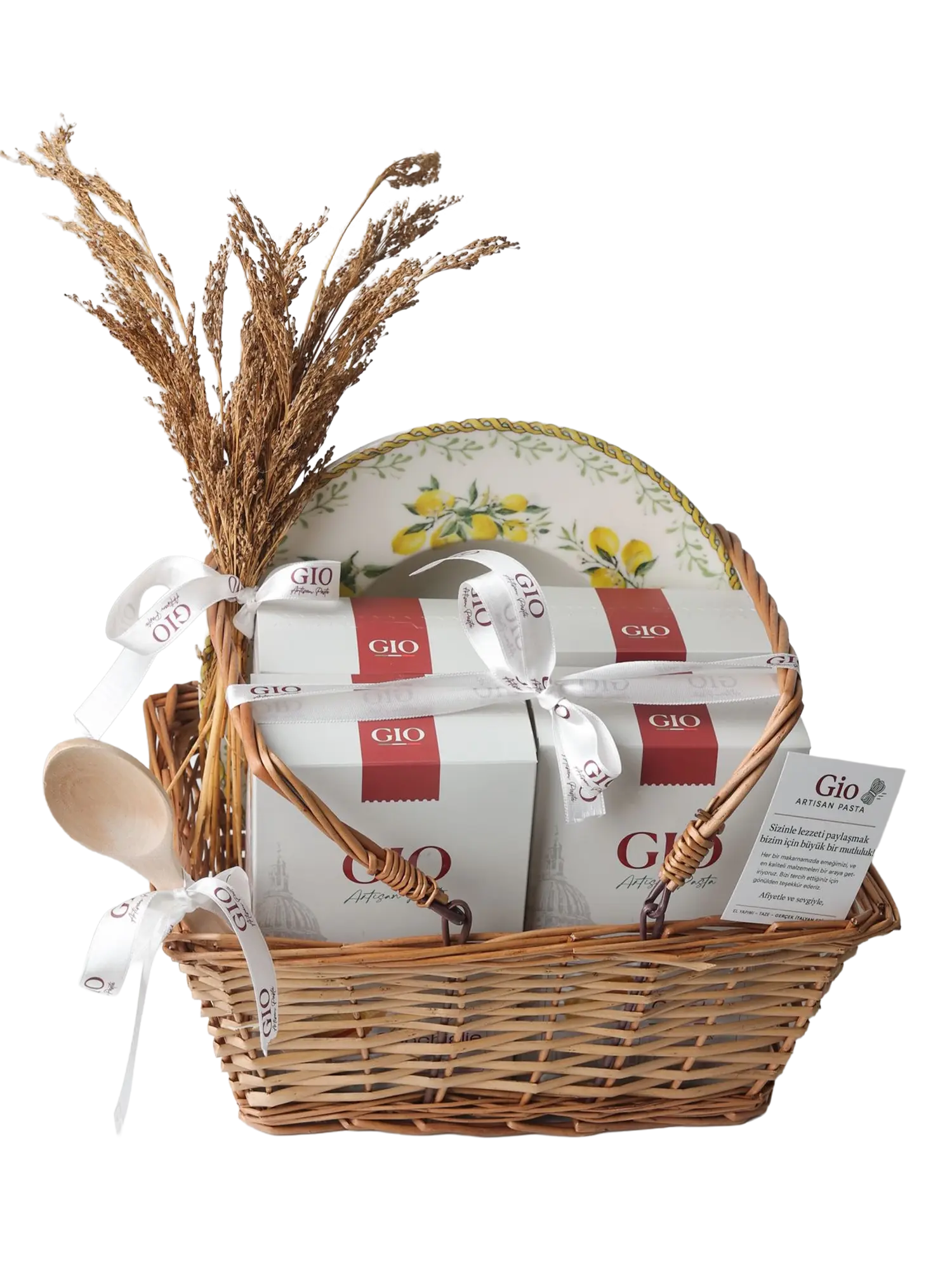 Giogusto’nun özel Kombine Kutusu, el yapımı lezzetleriyle sofralarınıza İtalyan dokunuşu getiriyor. Özenle seçilmiş 4 farklı makarna çeşidi, şık bir seramik tabak ve doğal tahta kaşık ile tamamlanan bu kutu, hem kendiniz hem de sevdikleriniz için zarif bir hediye seçeneği.